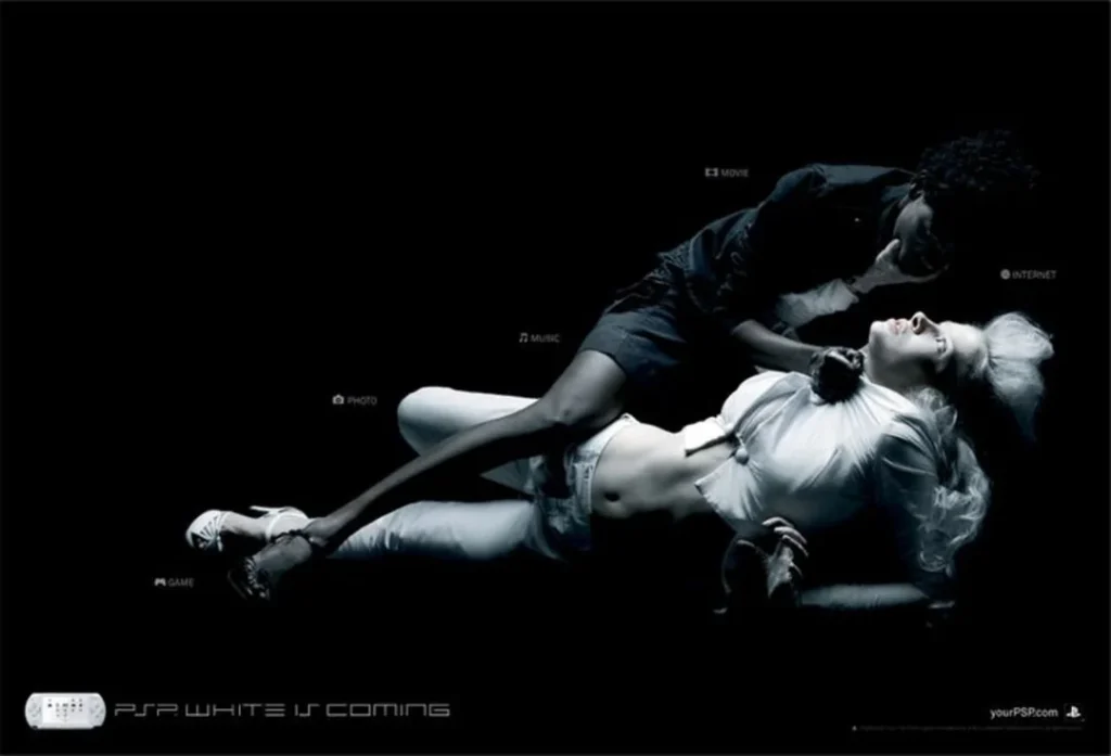 The source of this rise in attention was a call to action on Twitter to point out problematic advertising, with the Sony PSP being called out for a particularly… interesting ad from 2006. Take a look at the picture below, and you can probably guess why.